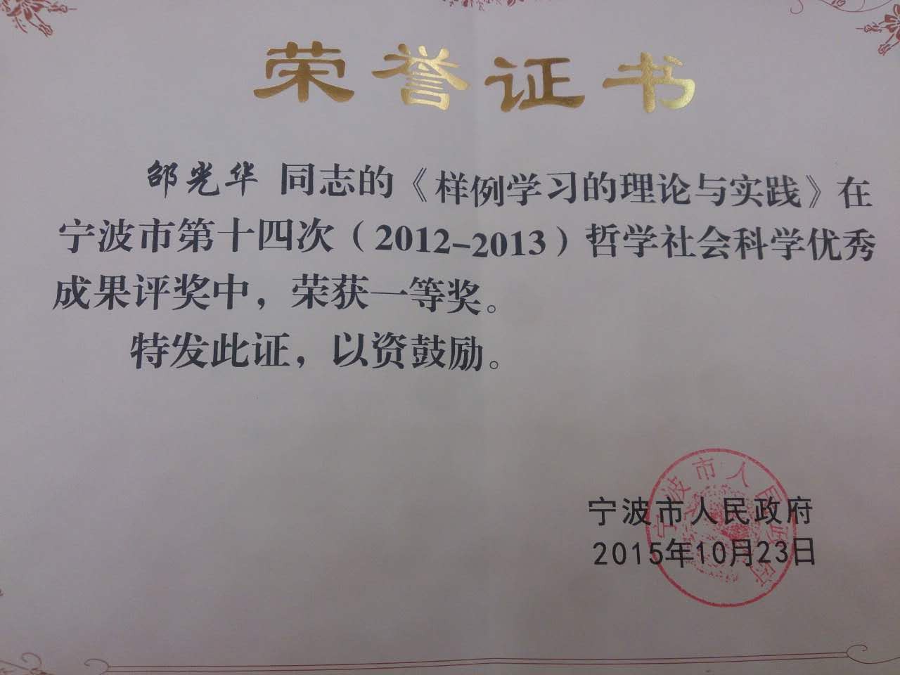 大会上,对宁波市第十四次哲学社会科学优秀成果奖进行了颁奖,我院邵光华副院长《样例学习的理论与实践》喜获宁波市第十四次哲学社会科学优秀成果奖一等奖。